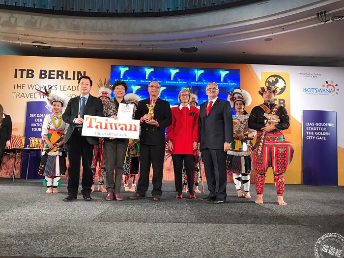 而德國柏林旅展,甫於3月8日至12日在柏林展覽館舉辦,而臺灣也不能放棄這個曝光機會,交通部觀光局組團以「多元行銷.布局全球」為策略,以生態旅遊、綠能觀光為主題,搭配「Taiwan - The Heart of Asia」臺灣觀光品牌意象,呈現臺灣登山健行、自行車旅遊及鐵道旅遊主題,而參加柏林旅展的臺灣代表團,包括臺灣觀光協會、2家國籍航空公司、民宿協會、3家飯店及10家旅行社業者,觀光局邀請AMIS旮亙原住民樂團及三昧堂創意木偶團隊表演團體共同前往。