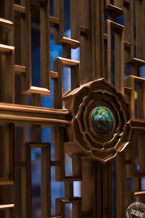 而值得一提的是麗晶軒內,在進入包廂區域前,一幅立體的水晶掛飾引人駐足,以三星堆文化出土的「青銅鳥形樽」中得到靈感,運用25萬顆水晶,2757根線懸掛成形,來表達對中國傳統文化的傳承與延續。