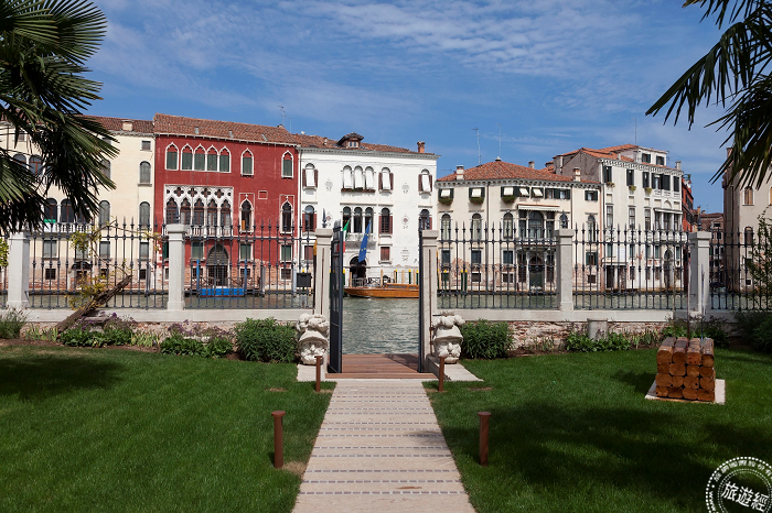 外觀為一棟三層樓的貴族宅邸,並在運河畔的獨立花園中設有威尼斯飛獅意象的裝置藝術