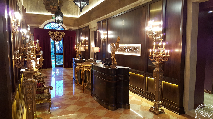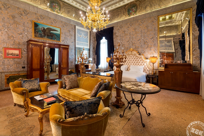 飯店中有18間風格裝潢各具特色的客房,每一間都以威尼斯的歷史文化為靈感、對應18個主題,細心保留其原始精緻樣貌,無論是文藝復興時期的濕壁畫或大理石壁爐等均由專家考究修復。飯店在設計上,更引進了許多東方元素與文藝復興時期的西方文化相互激盪,在迎賓大廳、房間內,可以看到威尼斯絲綢做成的絲綢壁紙、威尼斯多種貨幣呈現的裝飾、城徽飛獅畫作、以及具有東方意象的櫥櫃與瓷器等,搭配在一起彷彿經歷了十字軍東征時期,或是置身於馬可波羅遊歷中國的時代,許多古法修復的技術,更成功詮釋了威尼斯這個古都的醇厚歷史與文明。另外,飯店中更設置有Glam餐廳,是義大利最年輕的米其林二星主廚Enrico Bartolini所進駐營運,傳統義大利風味融合法式細膩的料理,是來到雲水之都絕對不能錯過的米其林星級餐飲體驗。