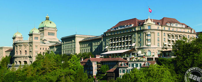 這間傳統的5星級酒店位於一幢建於1913年的典雅新藝術運動風格建築內,坐落在伯恩市(Bern)中心,毗鄰聯邦議會大廈(Federal Parliament),可以遠眺阿爾卑斯山群峰,是當地著名的下午茶首選。酒店是瑞士政府的官方酒店,多年來酒店接待了多位著名的客人,如查理·卓別林、英國女王、雅克·希拉克、納爾遜· 曼德拉、索菲亞·羅蘭、布魯斯·斯普林斯汀和菲爾德·卡斯特羅。在飯店內還有上個世紀的公爵畫像,讓旅客入住就像名人、貴族一般的尊貴。塔克除安排住宿2晚外,歡迎酒會亦在此歷史性建築舉行。