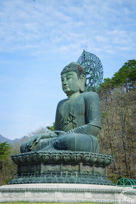 ▲新興寺旁「統一大佛」為南韓最北的一尊佛像,象徵南北韓統一的願望。