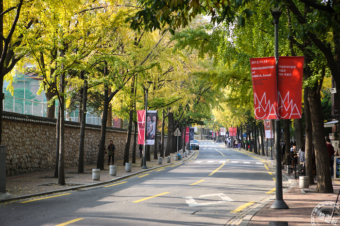 另外,鬼怪與昕倬第一次相遇的地方,即在「德壽宮石牆路」,是秋季不能錯過的韓國必遊景點,位於首爾市廳對面的「德壽宮石牆路」,長達約900公尺,因超過百年的建築與美麗的行道樹所形成,非常適合散步,這裡也是首爾情侶約會勝地之一,特別是當秋天來臨時,石牆路旁的兩側銀杏樹暈染成一片金黃,情侶們手牽著手,相互依偎走在石牆路上,十分愜意,浪漫指數也直逼破表。