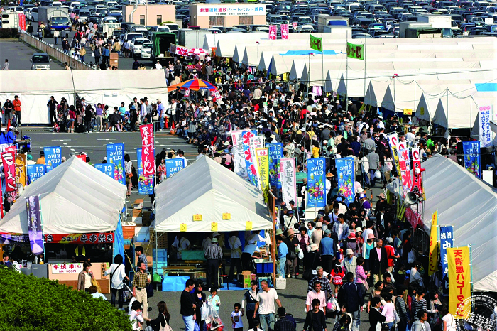每年春、秋兩季都會在兒島舉辦的「瀨戶大橋祭」,其規模可說是岡山縣內數一數二。現場會有超過200個攤位, 不但有直接販售兒島產的牛仔布系列商品, 還能品嘗到各種美食。