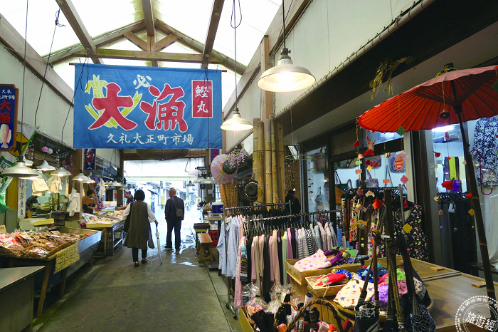 從傳統魚市場轉型為觀光市場,40公尺長的街道二邊除了蔬果魚獲商店,更有4家可直接品嘗新鮮食材的餐廳,只要在攤位上購買新鮮食材,就可以直接到餐廳享用高知美食稻草燒鰹魚、一夜干等。