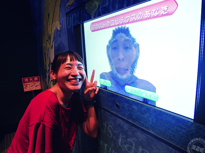 ▲透過機器觀看自己的原始人或未來人長相的互動裝置