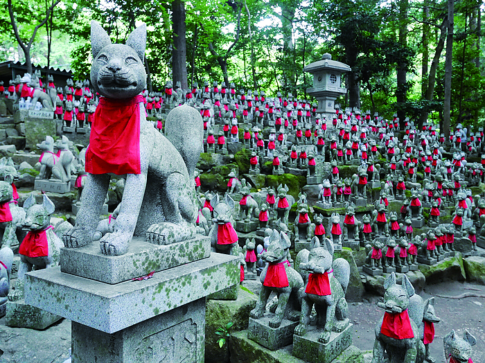 ▲供奉著超過千隻的的狐狸石像「靈狐塚」,畫面壯觀