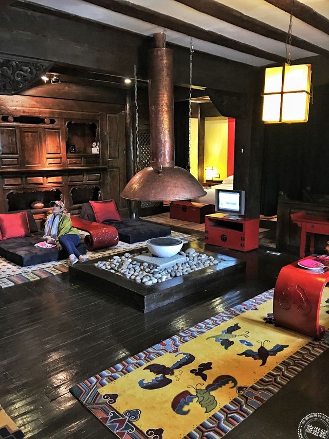 進入中甸仁安悅榕庄融合納西族元素和徽派建築的園林,錯落有致的傳統建築,一眼望去都是納西族灰瓦白牆,房內擺設東巴文字的壁畫、古典的木製座椅,滿是中式風情,2層樓式的民居帶有濃厚的藏族風情,以紅色為主色調的內裝潢並不刺眼而是展現高貴的品味!