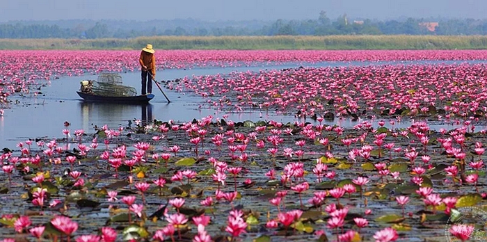 泰國東北部烏東他尼府的Nong Han Kum Pavapi,每一年從十二月到二月之間,這三個月之中,這座「紅蓮花海」佈滿了美麗盛開的紅色蓮花,是許多民眾赴泰時到泰國東北部烏東他尼府欣賞淡水湖「紅蓮花海」的迷人美景的時刻。除此之外,2月2日至4日在曼谷市中心的奈樂公園將舉行「2018奈樂花卉暨花園藝術博覽會」!