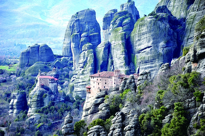 梅提歐拉在希臘語中意為在「天空之上」或「懸浮的石頭」,修道院就建在這些懸在半空的巨石之上,在15世紀隱士思想大復興的時代,24座修道院建於這些天空之柱上,現存的6座修道院都矗立在數百米高的懸崖砂岩支柱上,不僅是希臘東正教教堂最大和最重要的建築之一,更已被列入世界自然和文化雙遺產名錄,世所罕見的震撼視覺,令人嘖嘖稱奇。HBO自製奇幻史詩影集─《冰與火之歌:權力遊戲》(Game of Thrones),劇中無法攻克的鷹巢堡就是在梅提歐拉取景,此劇在台有超過4百萬戶的觀眾基礎,能親臨劇中場景朝聖,也是追劇者的夢想之一。