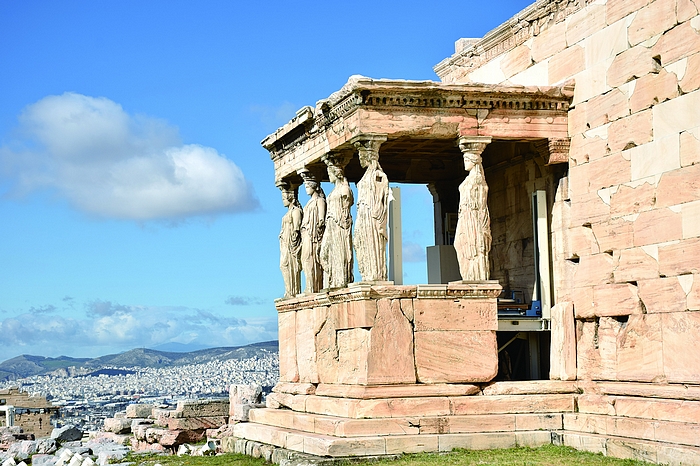 ▲伊瑞克提翁神殿著名的6根少女像大理石柱,雖是復刻品,但仍是遊客到此一遊的必拍景色。