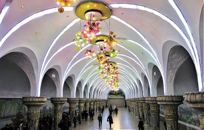▲號稱全世界最深的平壤地下地鐵,此為復興站月台。