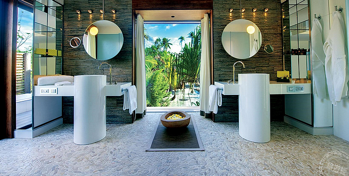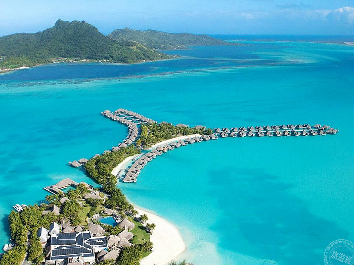 「波拉波拉St. Regis渡假酒店The St. Regis Bora Bora Resort」位於波拉波拉潟湖的私人島嶼上,被細白沙灘和寧靜潟湖所包圍的世外桃源,經典水上屋、水上餐廳供應世界級美食,泳池酒吧舒適躺椅,讓這裡成為影后妮可基嫚的夢幻放鬆之地。