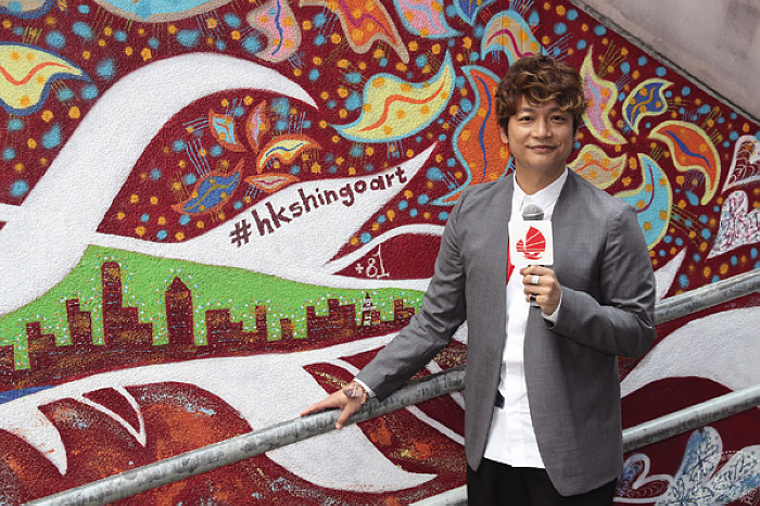 ▲ 香港旅遊發展局特別邀請日本巨星兼新晉國際藝術家香取慎吾來香港,在中環耗費3晚時間完成首件海外藝術作品《大口龍仔》。