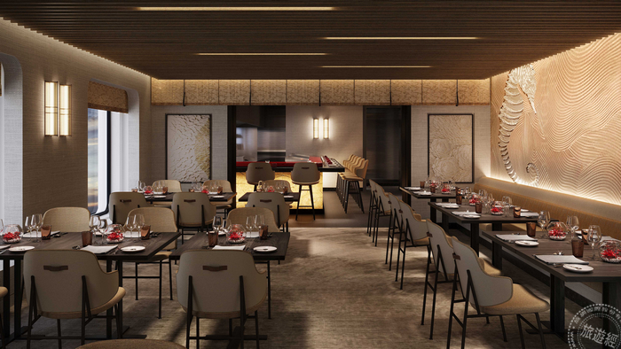 船上設有6間餐廳,其中包括由日籍名廚松久信幸(Nobu Matsuhisa)主理的海馬日式料理餐廳Umi Uma