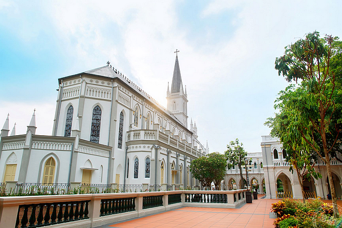 新加坡目前仍有許多歷史建物,其中最著名是就是這座擁有百年歷史的哥德式教堂,如今成為舉行婚禮的熱門場所。電影中男主角Nick的好友 Colin 和 Araminta 的婚禮就是這裡舉行。贊美廣場起初是耶穌聖嬰修道院,後來收容許多孤兒,成為一所小型學校。目前則是藝廊、精品店、餐廳和酒吧等聚集地。