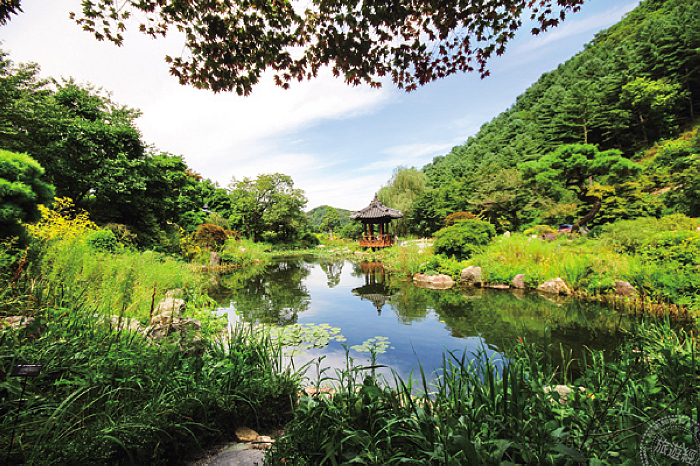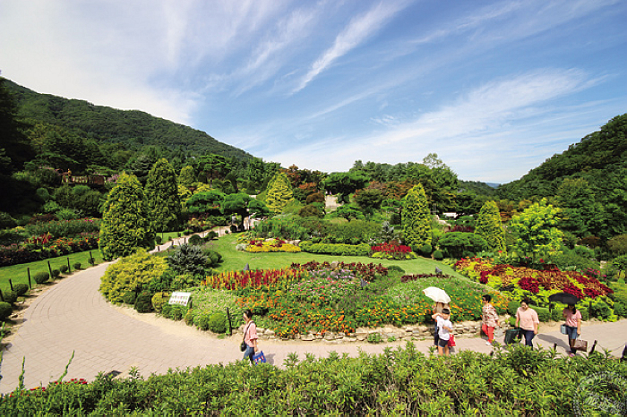 位於祝靈山山麓的晨靜樹木園,闊達10萬餘坪,規劃出22個主題庭園,花草樹木在園藝專家們的巧手安排下,形成一幅又一幅美麗的庭園風景畫;而且順著高低起伏的地勢,設置了幾處觀景台,從台上看下去又是不同角度的美景,真的是畫中有畫,令人讚嘆連連,韓劇《原來是美男》、《雲畫的月光》和綜藝《無限挑戰》等都曾在此取景。隨著季節嬗遞,會有不同的植物輪番登場,因此四季前來都能看到不同的風情畫面。