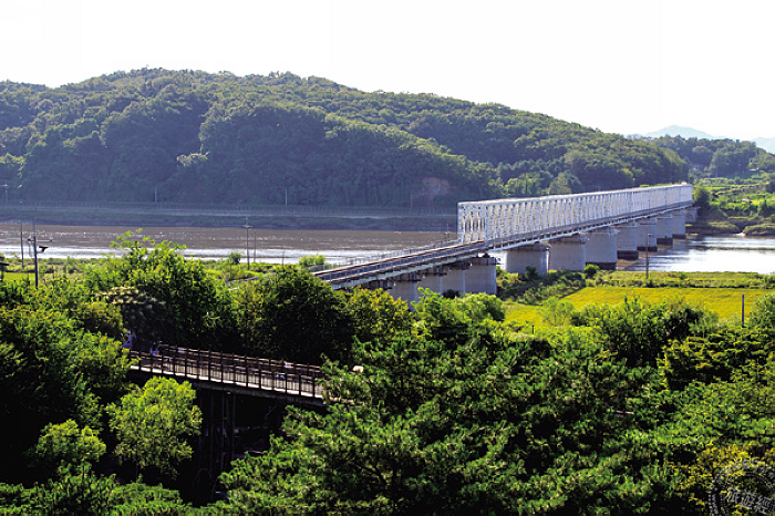 臨津閣是南韓在軍事分界線南方7公里處設立的紀念地,在這裡可以看到當年被炸毀的京義線鐵道、蒸氣火車頭和後來為失鄉民們搭建的自由之橋、望拜壇等。此處也設置了瞭望台,可以清楚望見臨津江北岸的北朝鮮;踏著新近修築完成的空中步道,當年被炸毀的橋墩一覽無遺。