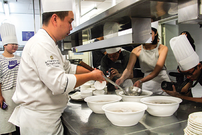 ▲大廚親自指導遊客製作道地的溫州魚丸。