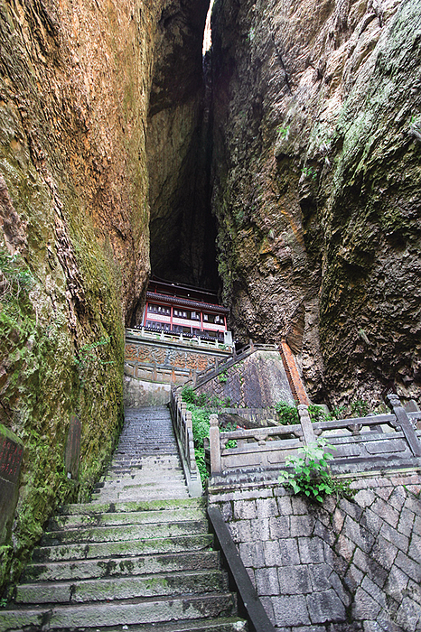 靈岩景區在2016年開放了一條玻璃棧道,一般遊客不必身懷絕技,也可以循著棧道進入臥龍谷。臥龍谷是黃曉明和劉亦菲版《神雕俠侶》的重要拍攝地,這一路會經過懸崖峭壁、飛瀑、深潭,景色絕美,正是劇中「活死人墓」、「絕情谷」等場景歷歷眼前。