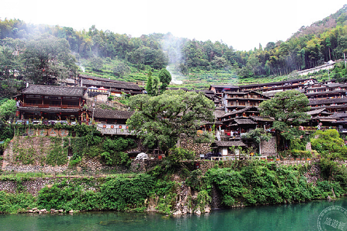 楠溪江位於溫州北部的永嘉縣,因為環境佳、水質好,居民普遍長壽,最高齡的人瑞活到117歲,是大陸知名的長壽村。江畔目前還存在著200多個歷史文化村落,岩頭村是其中最大的古村,水利設施相當發達;一條明嘉靖年間建設的麗水古街,長達300公尺,曾經是鹽商必經的商店街,屋外還有供行人擋風遮雨的長廊與美人靠,形成一道月牙形的弧度,非常優美,是楠溪江最具代表性的畫面。