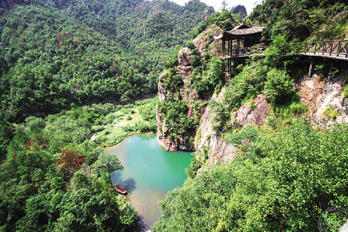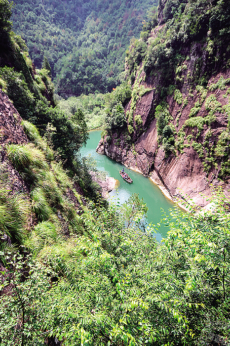 石桅岩和雁蕩山類似,也是火山爆發所形成的地貌,306公尺高的孤峰拔地而起,宛如船桅一般,因此叫做石桅岩。遊客可以乘坐輕舟,徜徉在碧綠的山水間,也可以選擇順著山腰的棧道慢慢爬到高點,只要十來分鐘腳程即可從高處俯瞰高山和曲流所形成的峽谷美景,非常賞心悅目。