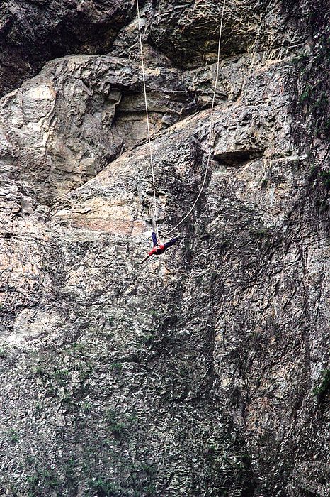早年雁蕩山當地居民因為採藥草所需,在懸崖峭壁間練就一身飛簷走壁的本領,現在靈岩景區最不容錯過的表演項目就是「靈岩飛渡」,見識表演者在拔地而起的天柱峰和展旗峰之間穿梭自如,令人讚嘆。