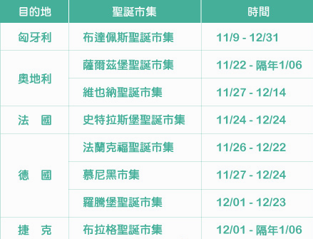 ※.「德法奧捷匈」聖誕市集開幕時間表: