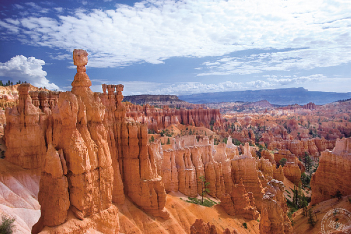 位於南猶他州的布萊斯峽谷,於1928年列為國家公園,以其瑰麗的色彩和獨具一格的地形而聞名。站在峽谷的邊緣望著上萬個由風霜、雨雪歷經千萬年侵蝕而成的石柱,有的像中國秦朝的兵馬俑,有的又像童話中的城堡、仙女、棋盤等更精采的是,隨著陽光的移動而瞬息萬變的色彩,橙色、棕色、紅色、灰色…深深淺淺的千變萬化,讓人驚嘆造物者的神奇。
