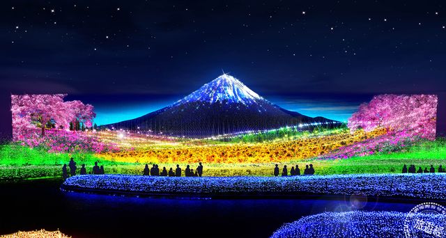 曾連續3年獲得全日本燈飾排名第1名的名花之里(なばなの里)夜間燈飾展,今年舉行時間為2018年10月20日至2019年5月6日,夢幻的主題宛如走進童話故事的場景,在佔地8000坪的大地上,綻放點點星光,搭配超大螢幕的山峰造景,可以飽覽日夜、四季與世界各地主題,非常過癮。
