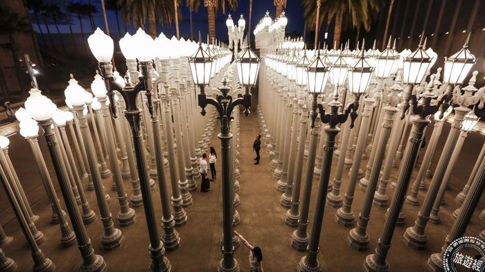 有沒有印象在電影《飯飯之交No Strings Attached》,男女主角之間的嬉鬧戲碼,或是《情人節快樂Valentine's Day》的街燈叢林,那如夢似幻的畫面?這夢幻的燈景便是藝術家Chris Burden的大型裝置藝術作品《Urban Light》,集合了舊時代修繕過的古老街燈,在2008年洛杉磯美術館設置而成。這百盞街燈高低落差不同,擺設出一篇具有整齊之美的發光叢林,自從啟用之後也儼然成為了熱門電影取用的場景,快來親眼看看螢光幕中的這片柔光森林吧!