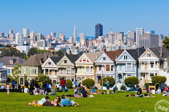 臥躺在綠地漫天的草皮上,與三五好友談論暢飲,在舊金山阿拉莫廣場非常適合想要盡情放鬆的行程的遊客!搭配著房屋背後一望無際的城市天際線,公園地點的設置充分利用了舊金山地勢起伏,因此形成特別的觀景點,廣場公園對面中的連棟維多利亞式房屋「彩繪女士 Painted Ladies」,各個色彩鮮豔端莊典雅,吸引不少在地居民及旅人們在此享受微風吹拂。