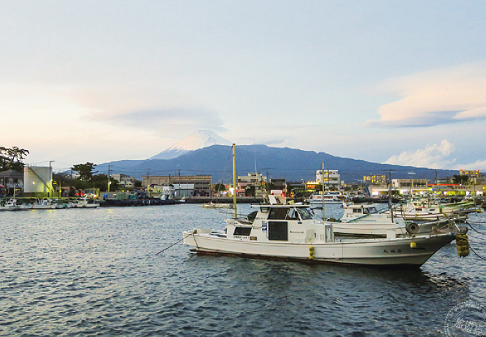沼津港向北是富士山,向南是駿河灣,地理位置絕佳,以沼津港為中心,漁業發達,滿街販賣著剖開曬製的乾竹莢魚堪稱日本第一,這裡隨處可見新鮮的漁獲或海鮮製品,港口周圍有各式海鮮美食店鱗次櫛比,運氣好還能在港邊欣賞到富士山美景。