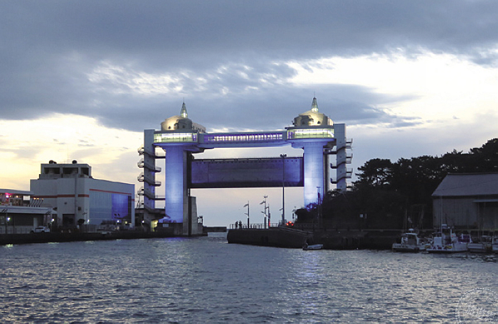 是日本規模最大型的展望水門,而水門最主要的功能是為了阻擋海嘯來時海水灌入,在水門的上方設有展望台,可360度眺望富士山、駿河灣、沼津港及沼津市街景。水門夜間還會點燈,景色十分美麗。