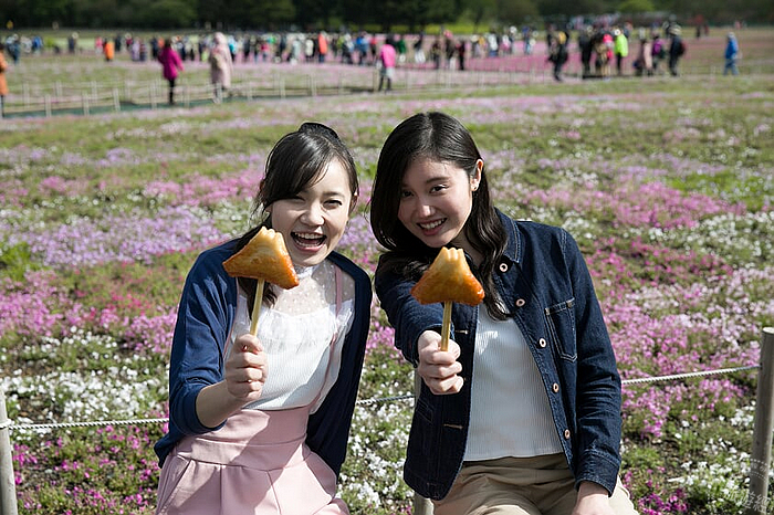 在富士芝櫻祭除了美景外,美食也受到許多民眾期待,為了邀請民眾前往 ,系列活動中的「富士山美食嘉年華」,同時將推出聚集富士山周邊在地美味麵食的「富士山麵食巡禮」。民眾可以品嘗到像是「甲州南瓜餺飥」(麵條較為寬扁的烏龍麵鄉土料理)、「富士宮炒麵」(使用具有獨特咬勁的麵條所調理的炒麵)以及「御殿場御廚蕎麥麵」(麵中加入山藥的溫熱麵食)以及富士芝櫻祭原創「芝櫻拉麵」等各特色麵食。同時還有造型為富士山的「富士山炸魚餅」和「富士芝櫻紅豆包」等。
