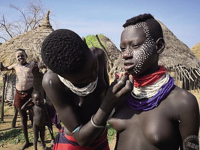 ▲Korcho村的卡羅族(Karo)是天生的藝術家,以身體做為畫布,巧手地用點、線、面等幾何構圖繪在黝黑皮膚上。