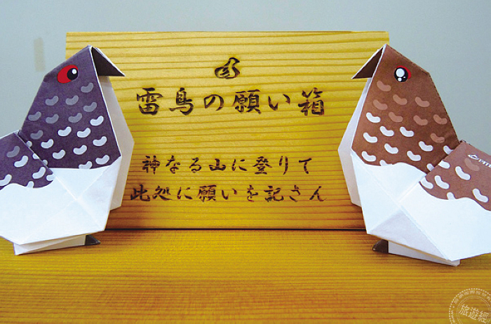 5月下旬後雖然雪壁高度不如開山初期,但立山黑部整體雪量仍相當充足,且更有機會巧遇被視為立山神之使者「雷鳥」的蹤跡!室堂觀光案內所內設有能夠免費許願的雷鳥祈禱箱,跟著教學就能將許願色紙折成雷鳥的模樣,非常可愛。遊客能夠將心願寄託給神之使者雷鳥後,這些心願會統一送往海拔約3,003公尺,位於立山山頂的雄山神社中宮殿集中焚燒,將大家的願望一起傳遞上天。(祈願箱擺放期間:4/15~11/4)