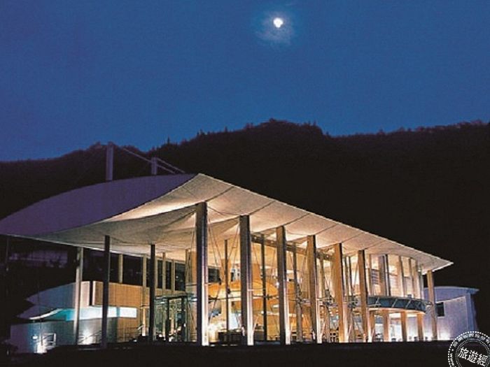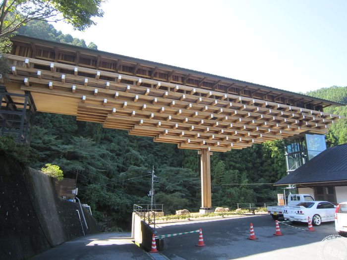 《檮原町綜合廳舍》為隈研吾2006年在檮原町完成的第二作,大量使用町產杉木,屋頂導入太陽能發電板,館內還設置富有在地文化的茶堂。一般開放時間:0800-17:00(日本新年期間外基本上全年開放參觀)。