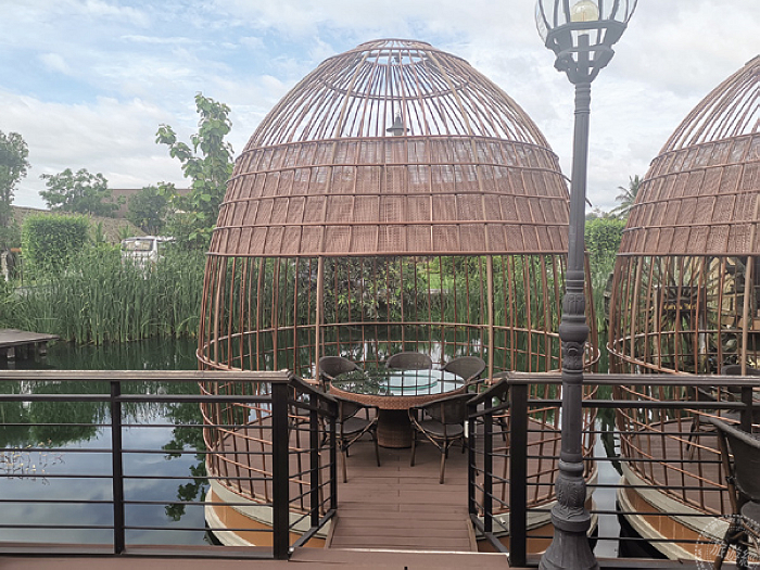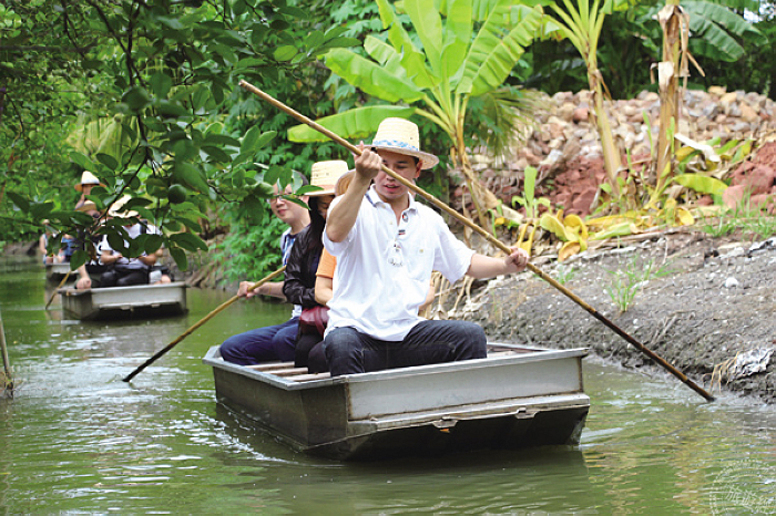 位於佛統府〈Nakorn Pathom〉的三攀度假村〈Sam Pran Riverside〉,從1962年開業至今,早年只是一小片玫瑰園,如今35英畝腹地裡有飯店、餐廳、經認證的有機農園、有機香草園、牧場、稻田等,不但很多物資可自給自足,製造出純天然的清潔、護膚、驅蚊等產品,而且旅客到此,可以學習植物染布、製作泰國古法藥草球、泰式風味甜點等,項目繁多,足以徜徉半天至2天的時間,非常適合銀髮族的旅客。