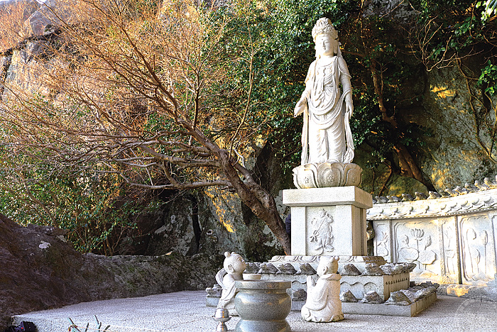 向日庵意為「向著太陽的小庵子」,為韓國境內最佳日出景點,也是四大觀音祈禱地之一。山茶樹和亞熱帶植物茂密,金烏山周邊的奇岩絶壁和開闊的大海交融在一起,形成壯觀的景象。