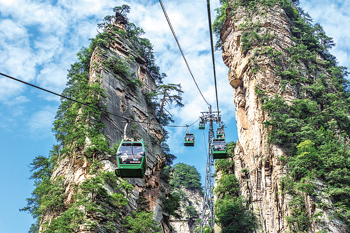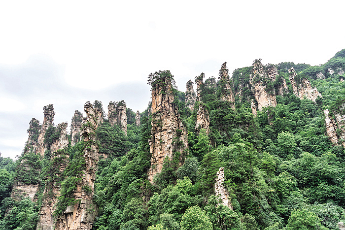 張家界得天獨厚的地形地貌條件,使其成為中國大陸第一座國家森林公園,不僅有黃山的飄緲和雄奇,更有桂林山水的神祕和靈秀。一根根石柱從地面拔地而起,在山頭和山壁上都長滿蔥鬱的草木,就像披著綠色植被外衣的摩天大樓,也無怪乎被《阿凡達》電影製作團隊看上,成為理想的「潘朵拉星球」原型取景地。