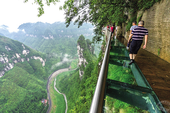 ▲懸崖棧道有玻璃棧道段可以體驗凌空而行的刺激感。
