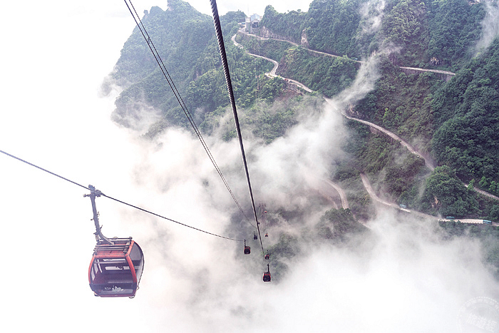 ▲天門山纜車索道長達7,455公尺傲視全球。