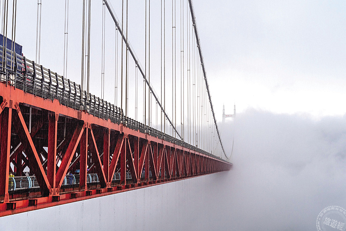 ▲矮寨大橋橫跨峽谷之上,有時隱於雲霧之中增添神祕感。