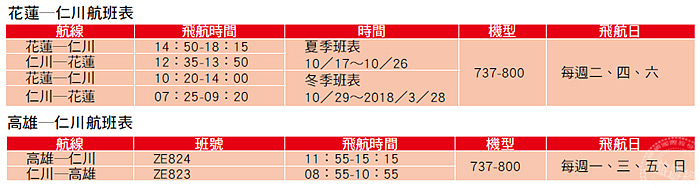 易斯達航空預計於10/17開始花蓮─仁川的航線服務,將以737-800機型飛行,座位數達189位。為此,易斯達航空特別於9/10拜會花蓮縣政府與當地業者,期盼攜手擴大市場需求。花蓮部分預計飛航每週二、四、六,夏季班表期間以午去午回的時間帶,冬季則是早去早回。
