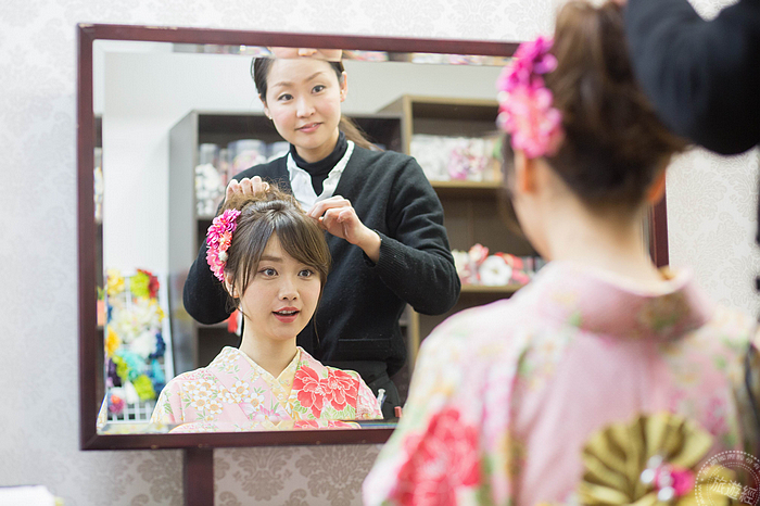 在日本首創觀光和服租借的「岡本」,租借一套和服約日幣3,980圓左右(約新台幣1,200元), 從事和服租借至今已逾180年的「岡本」,堪稱是日本傳統和服文創化的成功典範,該店前身為創立於1830年的「岡本織物店」,創業當時京都的舞妓體驗很受歡迎,在製作和服的專業基礎下,有鑑於穿和服的人愈來愈少,因而激發出「難道不可以穿和服觀光嗎?」的想法,於是岡本織物店開始轉型為「和服租借」,他開啟了京都當地和服租借產業的蓬勃發展,更讓日本和服文化得以發揚光大。