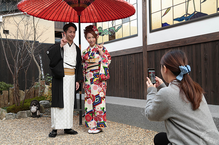 最中最受遊客歡迎還有一項措施,岡本還提供國人在出發前,即能在該店的中文官方網站預約租賃,既不用擔心選不到滿意的花樣,而且在出發做了選擇,還可省下不少寶貴的時間,把時光用在旅遊及拍照上。另外,還推出免費的「飯店歸還服務」,消費者可以穿著和服回到飯店,只需要提早告知,就可在隔日下午五點前將租借的和服返還給飯店櫃檯,而且也會將顧客放在店內的衣物送至住宿飯店,可說是相當貼心。