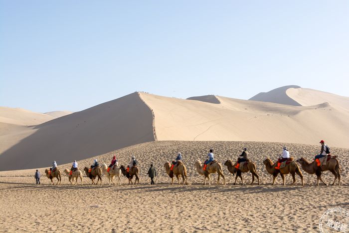 乘駱駝行走於鳴沙山,感受大漠風情。(圖片提供/旅遊經)