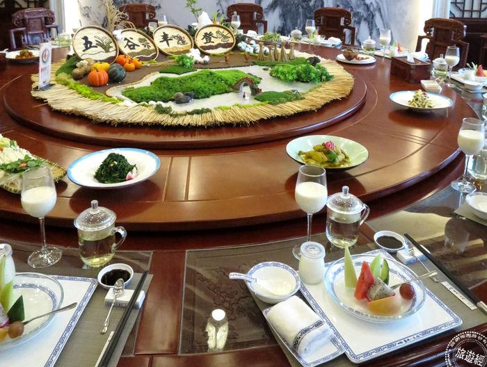 江蘇美食享譽海外眾所知名,在這一趟的蘇北之旅中,品嚐到非常傳統的料理形式「八大碗」,而鹽城「八大碗」,著名特色的是湯水多、料鮮;過往鹽城人遇到婚喪嫁娶時常用這八道菜來招待客人,第一道是用豬皮、青菜、肉片、魚丸等配料作成的農家燴土膘。第二道是摻了糯米的炸肉丸所作的紅燒糯米圓,第三道是「大雞抱小雞」,將雞肉絲與鵪鶉蛋一起煮,接著第四道是蘿蔔淡燒菜、第五道為蛋塊與蔥薑韭菜同煮的漲蛋糕,第六道是芋頭蝦米羹、第七道家常紅燒肉,最後第八道是紅燒雙鯽魚。這八道菜的形式大同小異,但其中的燴土膘與紅燒糯米圓是一定會出現的菜色。直到現今,八大碗已經不只八道菜,但不管如何演變,傳統八大碗依然屹立不搖,是當地民眾最道地的傳統滋味。