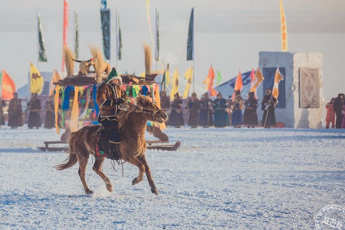 鄂溫克族冬季那達慕大會有賽馬項目,族人全力駕馬奔馳。(圖片來源/旅遊經)